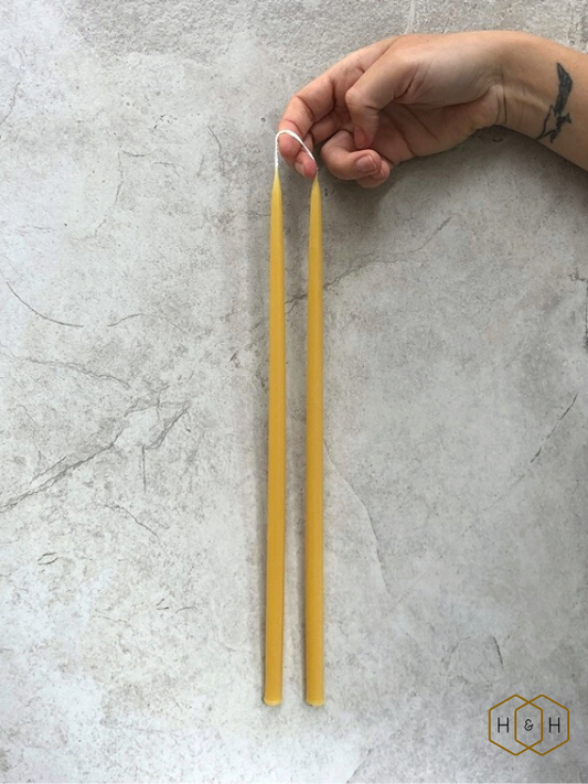 Our range of hand-dipped beeswax candles are made with 100% British beeswax and organic cotton wicks. Choose from the three styles below, from classic or skinny candlesticks to wide base stubby candles. Each variant is available in small to extra long so you can find the perfect fit!
