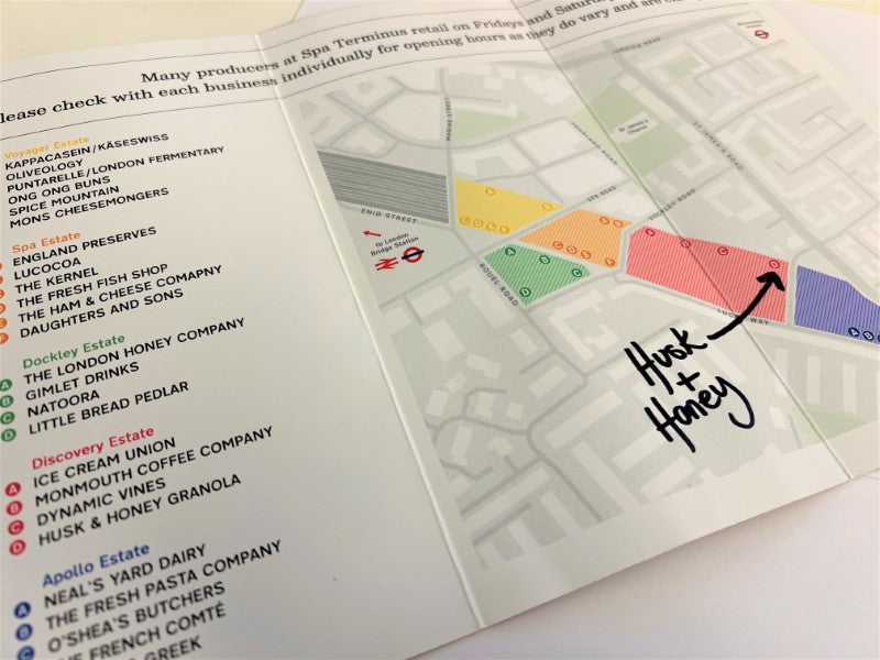 Since hosting at our first farmer’s markets, Primrose Hill, Sloane Square, and Broadway Market, Husk & Honey has grown organically to lay our aprons at our beloved bakery headquarters nestled under the arches of Spa Terminus, situated in the heart of London’s original food scene; Bermondsey.