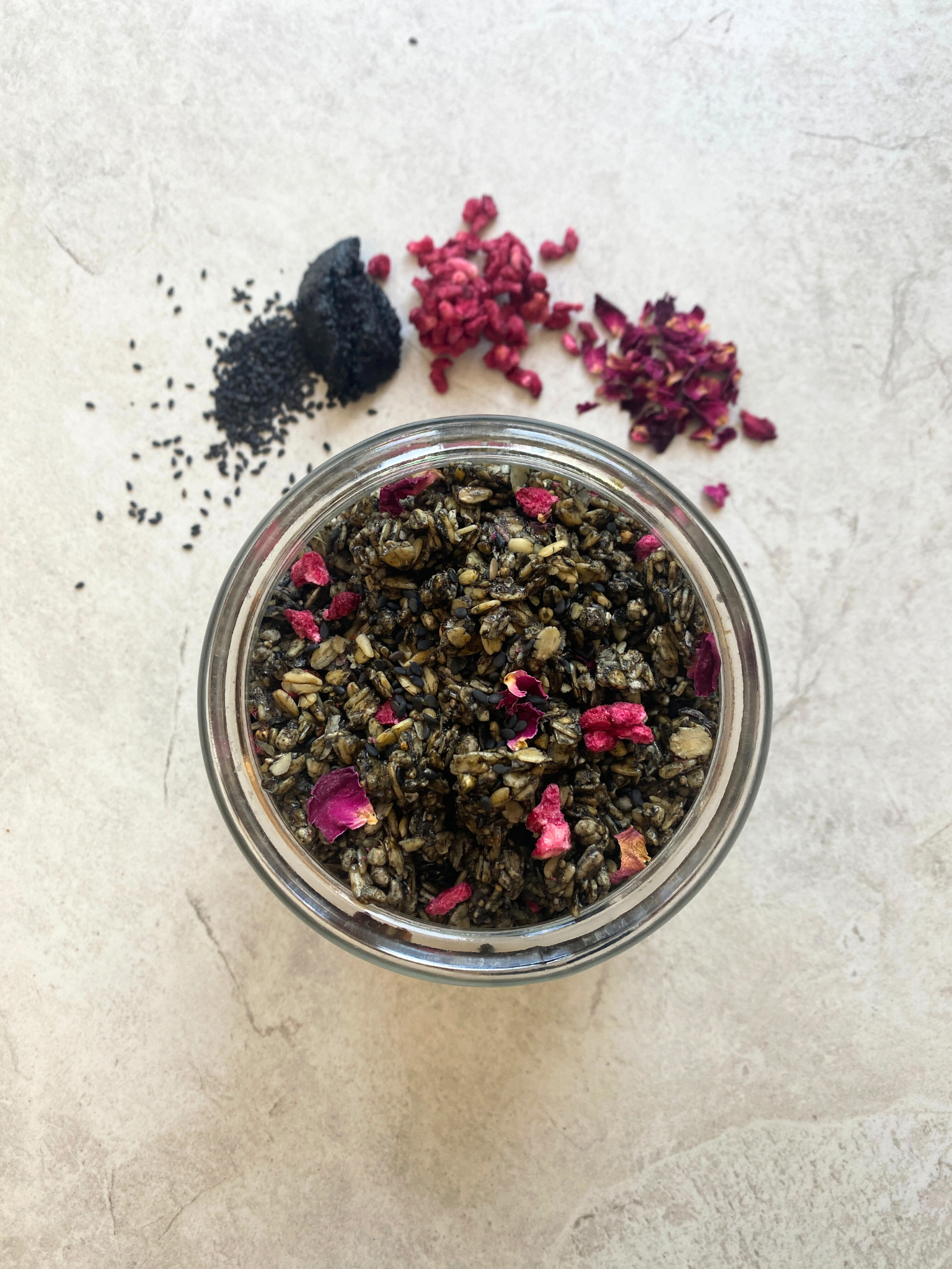 Organic Black Tahini, Rose & Pomegranate Granola