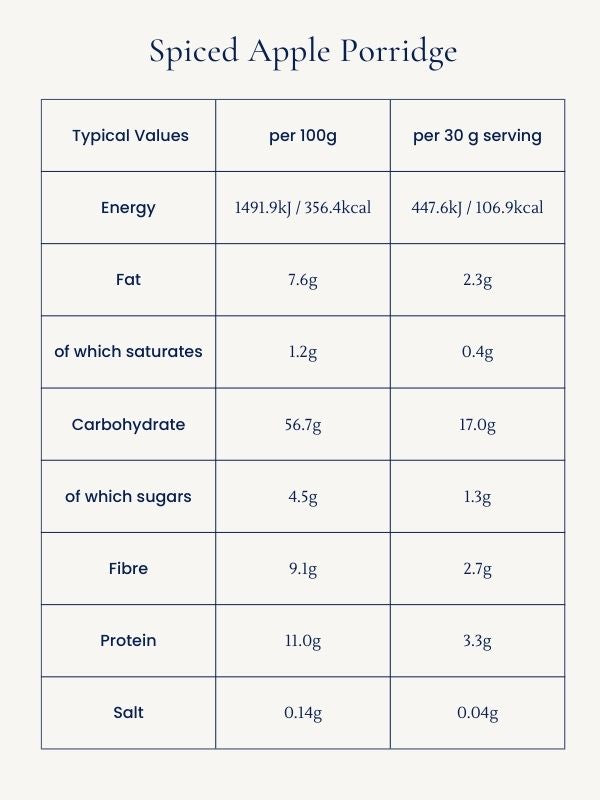 Warming spices and fresh, familiar baked apple flavours run through this rolled oat porridge.